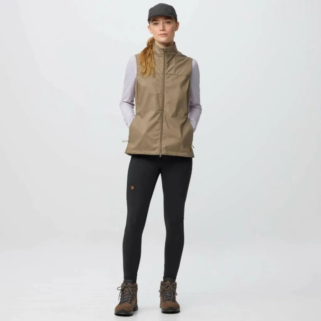 Auf der Vorderseite der Abisko Vest W kommt G-1000 Air Stretch Material zum Einsatz, die luftigste, ungewachste Variante des G-1000. Die Rückseite besteht aus elastischem Material mit hohem Elasthananteil. Das sorgt in Kombination für eine optimale Beweglichkeit und Belüftung sowie eine hohe Funktionalität. Falls nötig, lässt sich auch das G-1000 Air Stretch mit Wachs behandeln, um es wetterbeständiger zu machen.