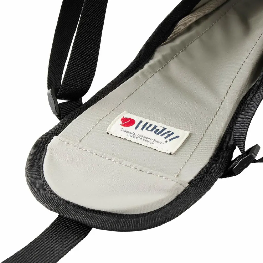 Potenziell viel Ausrüstung am Sattel braucht auch viel Stabilität. Die bringt das Hoja Seatbag Harness mit, denn es wird mit zwei kräftigen Riemen am Sattelgestell und mit einem Klettriegel an der Sattelstütze fixiert. Auf diese Weise ist der obere Rahmen fest mit deinem Fahrrad verbunden, während der untere Rahmen beweglich bleibt. Beide Rahmenteile zusammen haben deine Ausrüstung über die zweifach umgelenkten Kompressionsriemen an beiden Seiten fest im Griff. Die Blitzverschluss-Schnallen erleichtern das Anbringen und Abnehmen deiner Sachen. Die Rahmenteile sind mit Panels abgedeckt, die mit strapazierfähigem Vinylon F bezogen sind. Diese Panels schützen sowohl deinen Packbeutel als auch deinen Rücken, da sie vom Hinterrad hochgeschleudertes Wasser und Schmutz abhalten.
