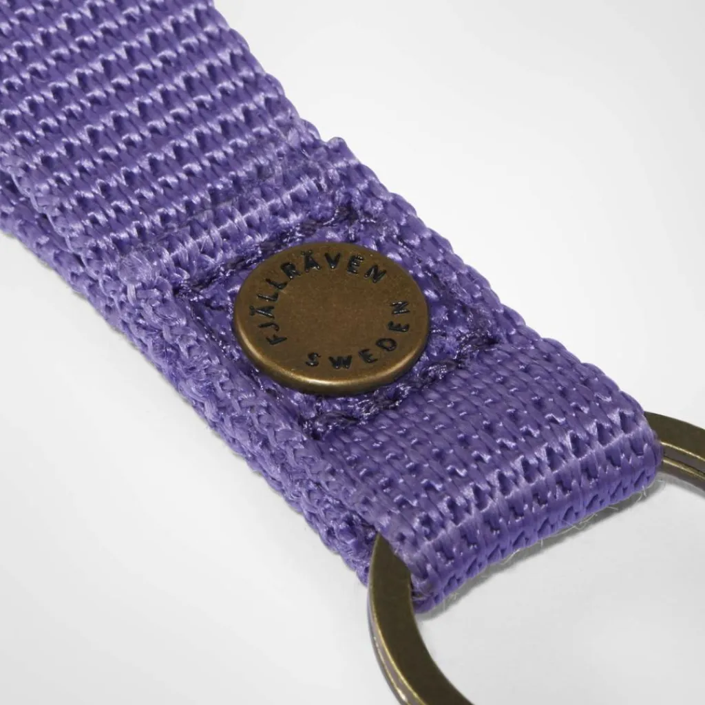 Der schlichte Webband-Schlüsselanhänger ist mit einem metallenen Fjällräven Logo und einem Schlüsselring versehen.