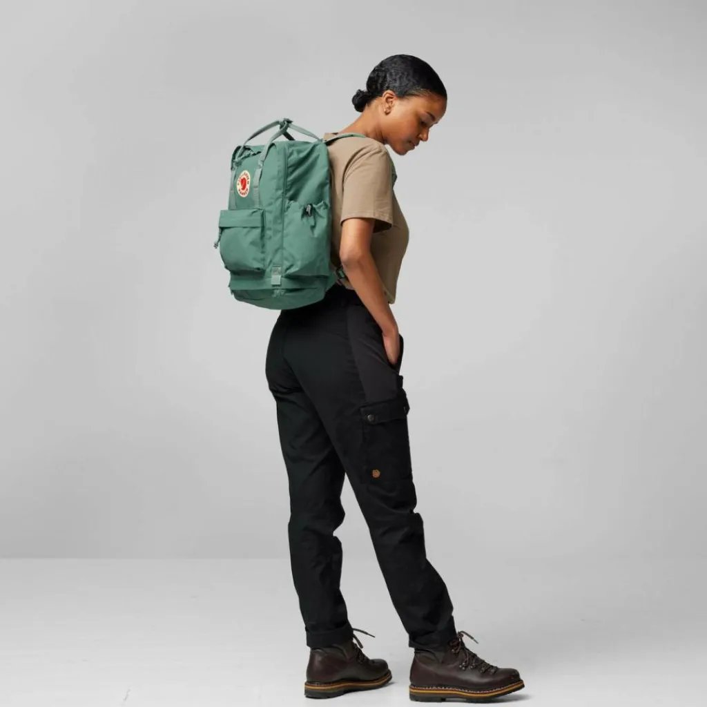Der Kanken Outlong wird aus Fjällrävens Vinylon F gefertigt: Das Material quillt bei Feuchtigkeit wie eine Naturfaser auf und macht das Gewebe dadurch wasserabweisend. Eine Beschichtung wird dadurch überflüssig. Ein weiterer Vorteil: Diese Fähigkeit des Gewebes bleibt ein ganzes Kanken-Leben lang erhalten! Für den längeren Einsatz im Regen, zum Beispiel auf einer Wanderung, empfehlen wir dir eine zusätzliche Regenhülle.
