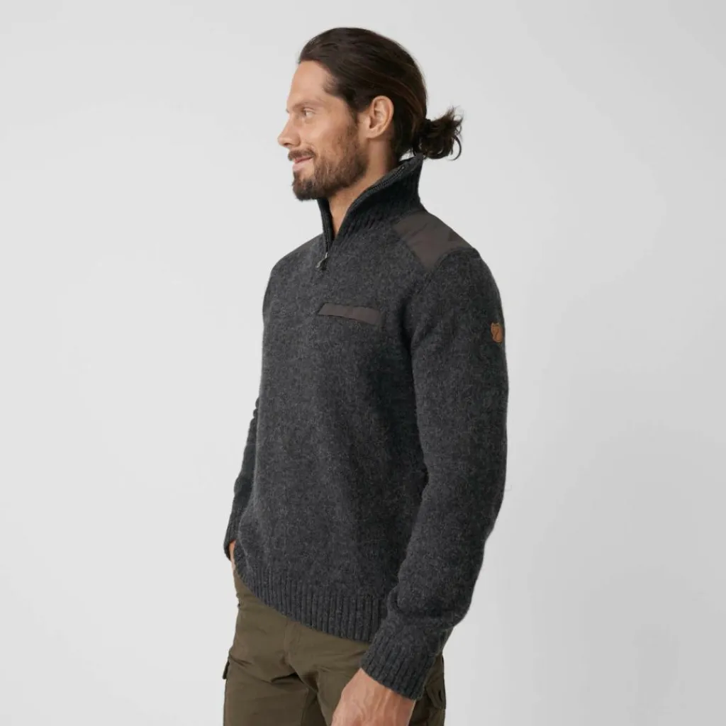 Die Schultern und Ellenbogen zeigen nach jahrelangen Gebrauch immer zuerst Verschleißerscheinungen. Deshalb hat Fjällräven den Koster Sweater hier zusätzlich mit dem abriebfestem G-1000 Original verstärkt. Ganz dezent im entsprechenden Farbton. Die verwendete Lammwolle wirkt auf natürliche Weise wärmeregulierend und wärmt auch im feuchten Zustand noch zuverlässig. Ein hochwertiger Pullover zum Wandern, Jagen und für den Alltag.