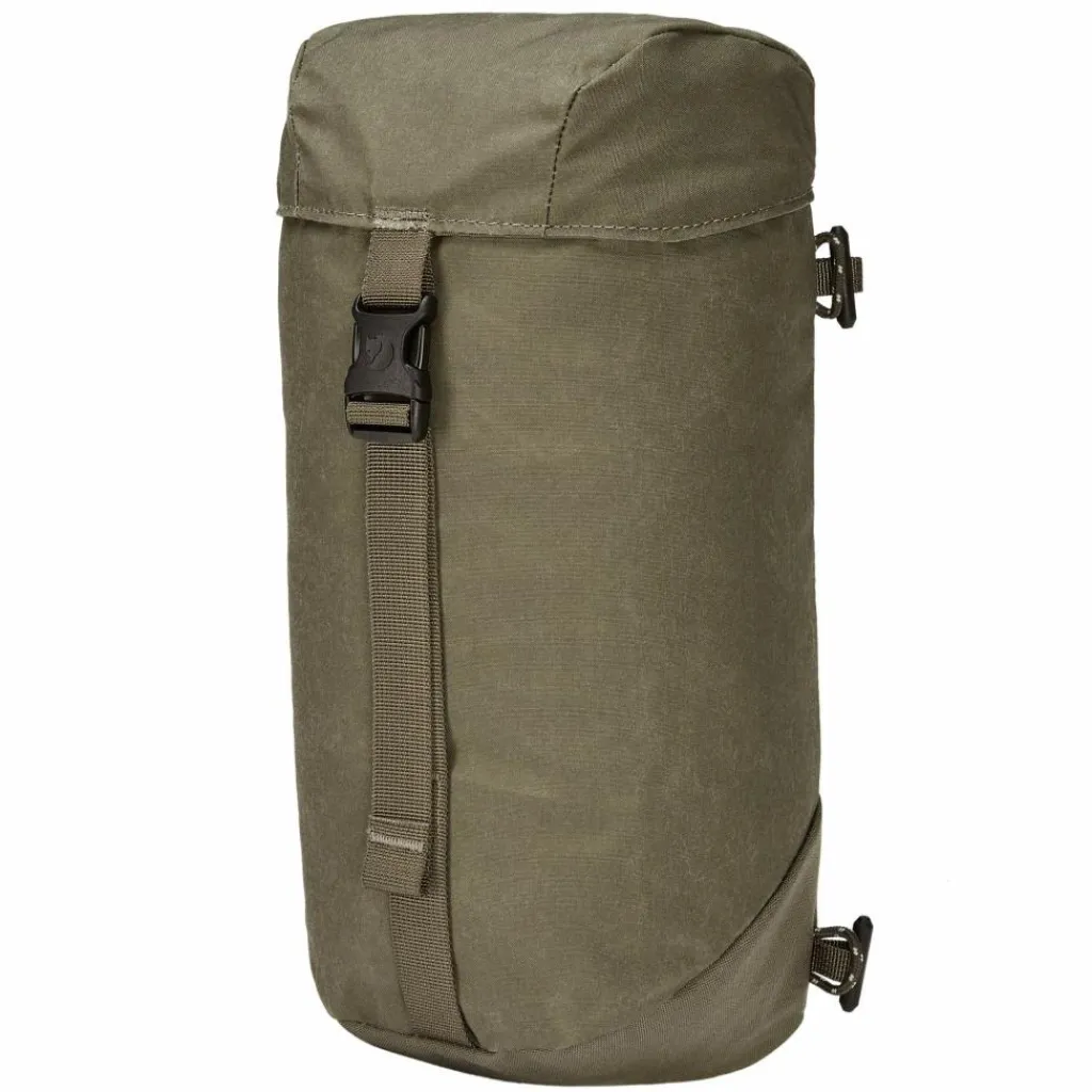 Das Kajka Side Pocket besteht aus wasserabweisendem Vinylon F. Die enggewebte Faser quillt bei Kontakt mit Feuchtigkeit auf und macht das Material dadurch stark wasserabweisend. Ganz ohne Imprägnierung! Der Klappdeckel der Zusatztasche ist weit hinuntergezogen und im Inneren gibt es einen zusätzlichen Kordelzugverschluss. So lassen sich auch höhere Gegenstände wie Flaschen oder Stative sichern.