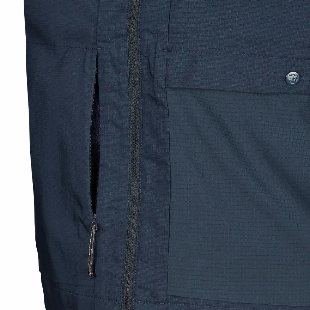 Für den Schutz vor auskühlendem Wind ist vorn das Fjällräven-eigene G-1000 Air Stretch Eco in Kombination mit einem Futterstoff verarbeitet. Willst du das G-1000-Material zusätzlich dichter bekommen, lässt es sich auch mit Greenland Wax bearbeiten. Die Westenrückseite ist aus einem Stretchmaterial mit Elasthan-Anteil gearbeitet. Insgesamt hat die S/F Gear Vest M einen hohen Recyclinganteil.