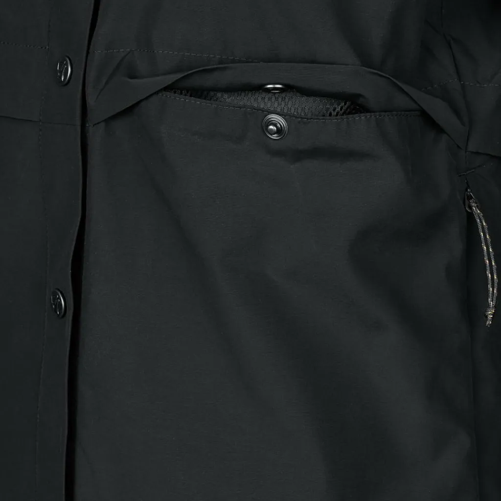 Auch die weiteren Details machen das S/F Rider’s Wind Jacket W windsicher: Der hochknöpfbare Kragen sorgt für zusätzlichen Windschutz. Die vorgeformten Ärmel haben elastischen Bündchen, die Zugluft abhalten. Unter den Armen gibt es zudem Belüftungsöffnungen, die warme Luft aus dem Inneren des Windbreakers ableiten.