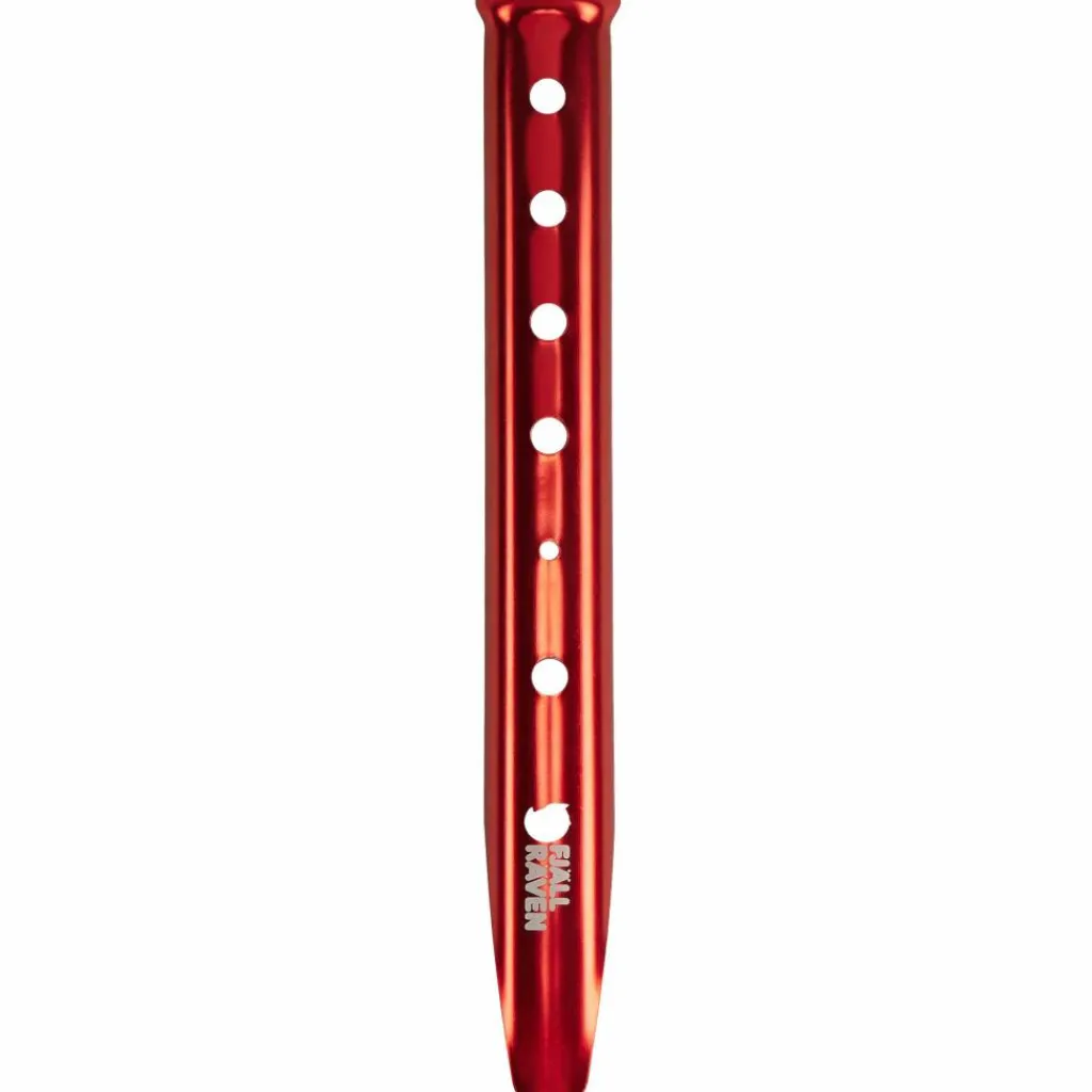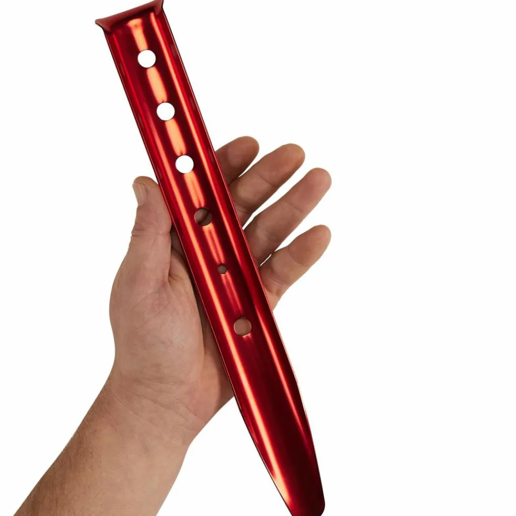 Breiter, langer Zelthering, der gute Stabilität in Schnee und Sand bietet, wo normale Heringe nur schwer Halt finden. Aus Aluminium hergestellt, gut sichtbare rote Farbe.