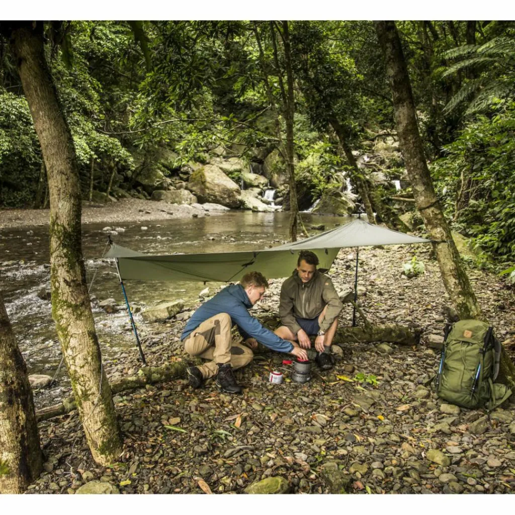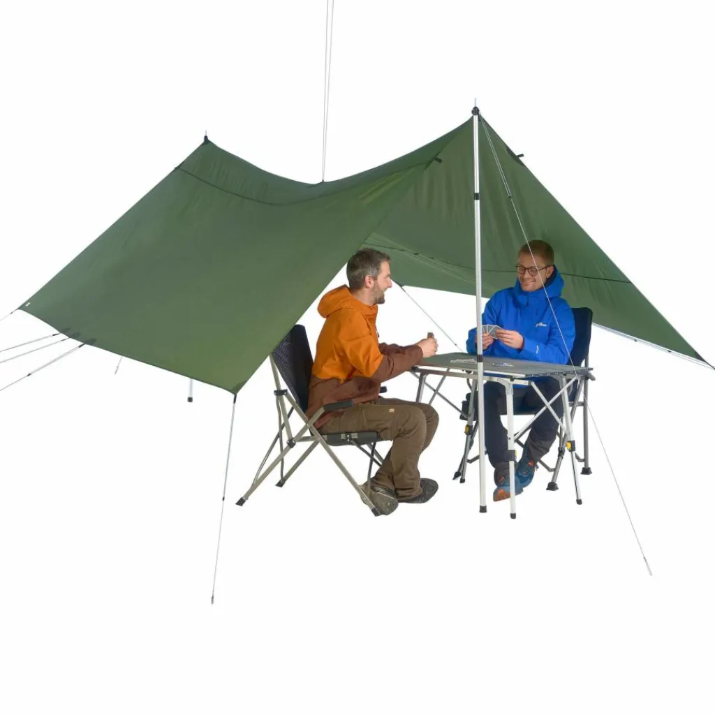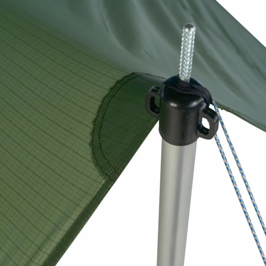 Großes Tarp aus reißfestem und robustem 40D TripleRip-Nylon. Das Tarp ist trotz seiner Größe verhältnismäßig leicht und klein im Packmaß. Ideal als Unterschlupf oder Windschutz.