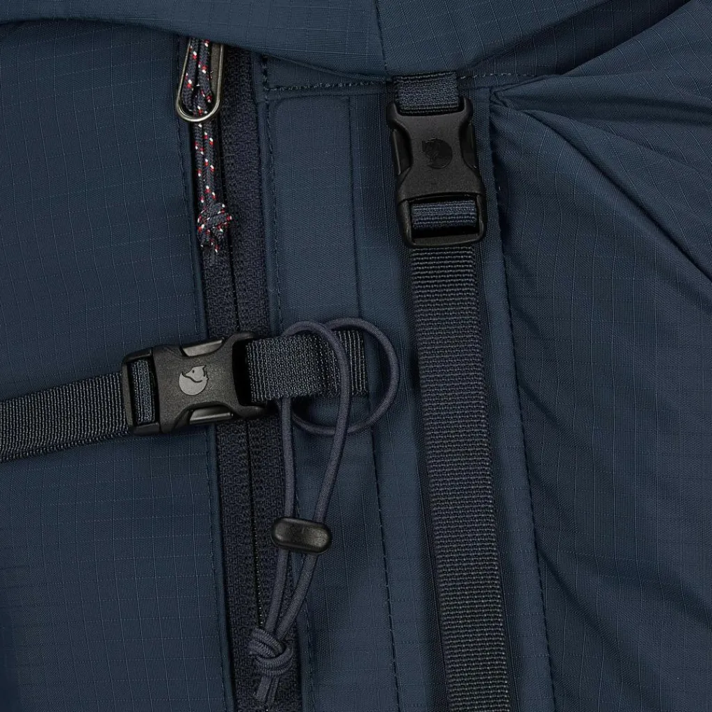 Ob unterwegs oder am Abend, die zusätzliche Frontöffnung des Hauptfachs ist äußerst praktisch. Daneben bietet der Tourenrucksack verschiedene Möglichkeiten, wichtige Ausrüstung so zu verstauen, dass du sie schnell zur Hand hast. Snacks und Sonnencreme passen in die Taschen auf dem Hüftgurt, Wasser kommt in Flaschen in den seitlichen Steckfächern oder im Trinksystem im Innern unter. Die elastische Kordel auf dem Deckel hält deine Regenjacke fest, falls das Wetter mal schnell umschlagen sollte.