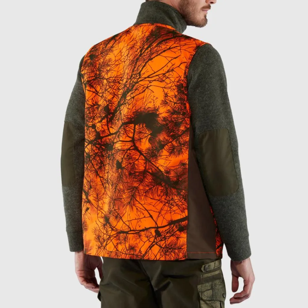 Mit der Värmland Vest von Fjällräven in Safety Orange bist du bestens für die nächste Jagd gerüstet. Und dank der Farbe wirst du nicht versehentlich für Wild gehalten.