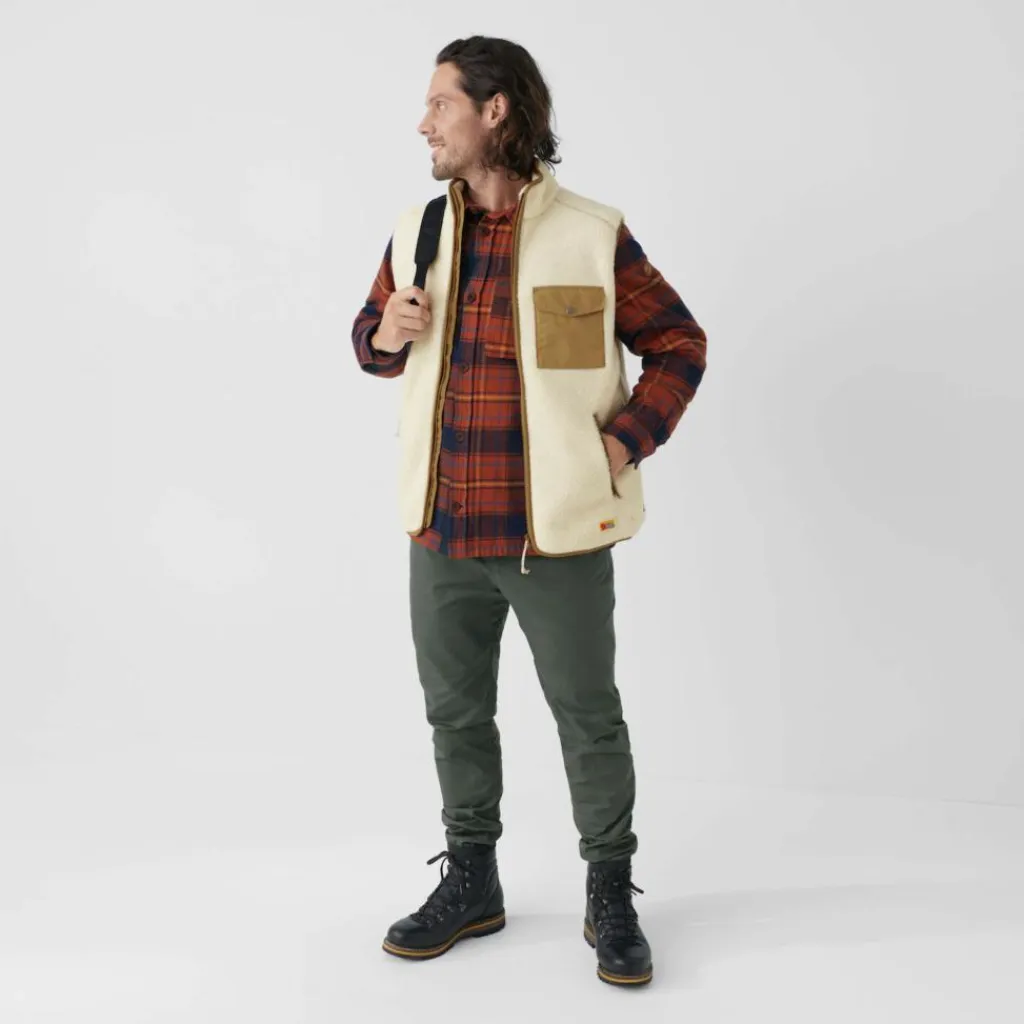 Drei Taschen sorgen für Stauraum, damit du wichtigen Kleinkram immer bei dir hast. Für den typisch urigen Fjällräven-Look wurde für die Brusttasche sowie für alle Einfassungen nachhaltiges G-1000 Eco Material verwendet.