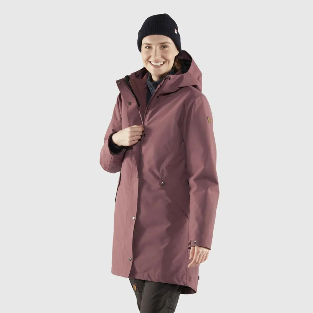 Die Visby 3 in 1 Jacket von Fjällräven ist eine lang geschnittene Doppeljacke aus synthetischem Material. Dank Hydratic–Membran ist sie außerdem zuverlässig wasserdicht.