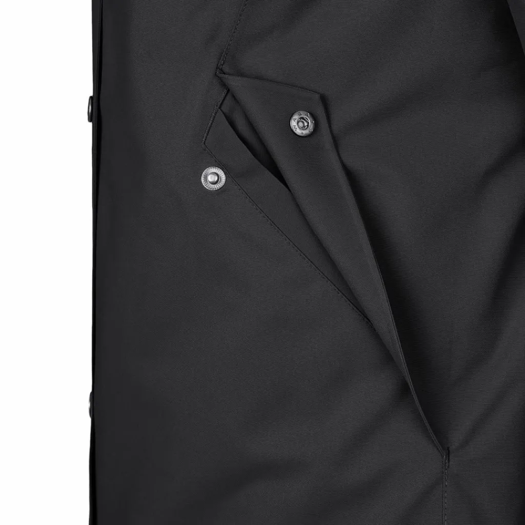 So kann dir auch ein handfester Platzregen nichts anhaben. Durch den langen Schnitt bleiben auch Gesäß und ein Teil der Oberschenkel gut vor Nässe und Kälte geschützt. Die schräg aufgesetzten Hüfttaschen mit Patte und Druckknopfverschluss sowie die Knopleiste auf der Vorderseite verleihen der Jacke eine besonders schöne Optik.