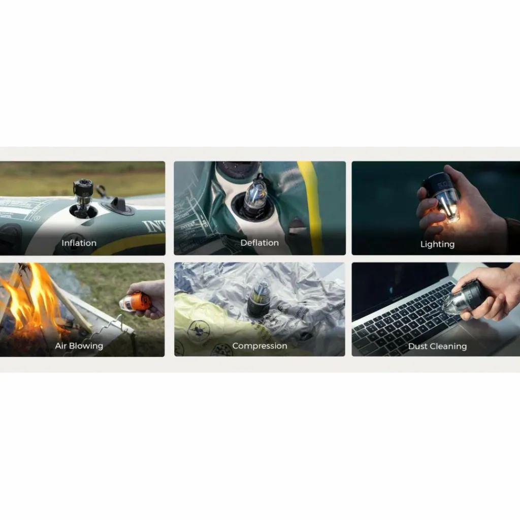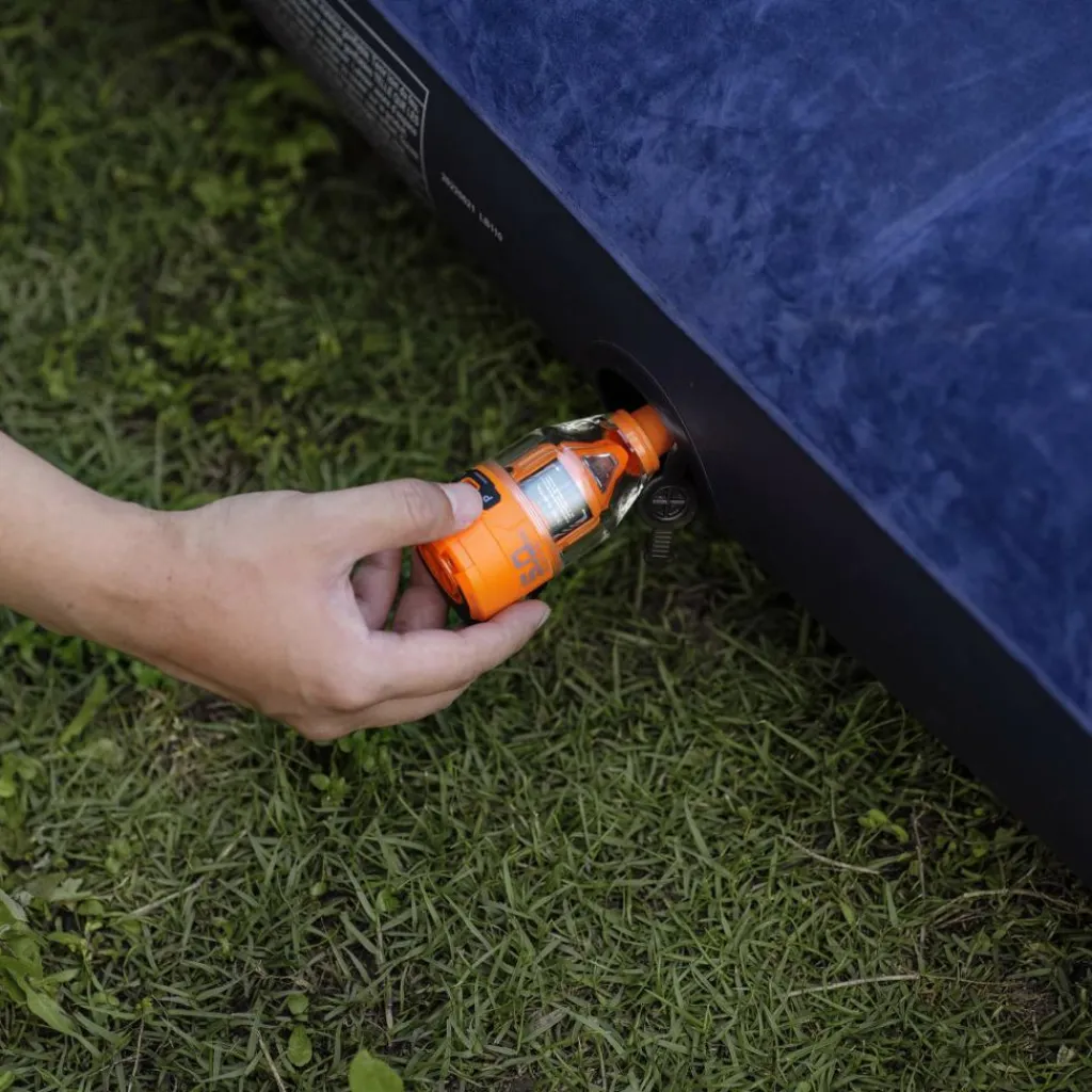 Eine Akkuladung reicht aus, um eine klassische Schlafmatte etwa 21-mal aufzublasen. Ein Doppelbett kann etwa 8-mal befüllt werden. Aufgeladen wird der Akku über den integrierten USB-C-Anschluss.