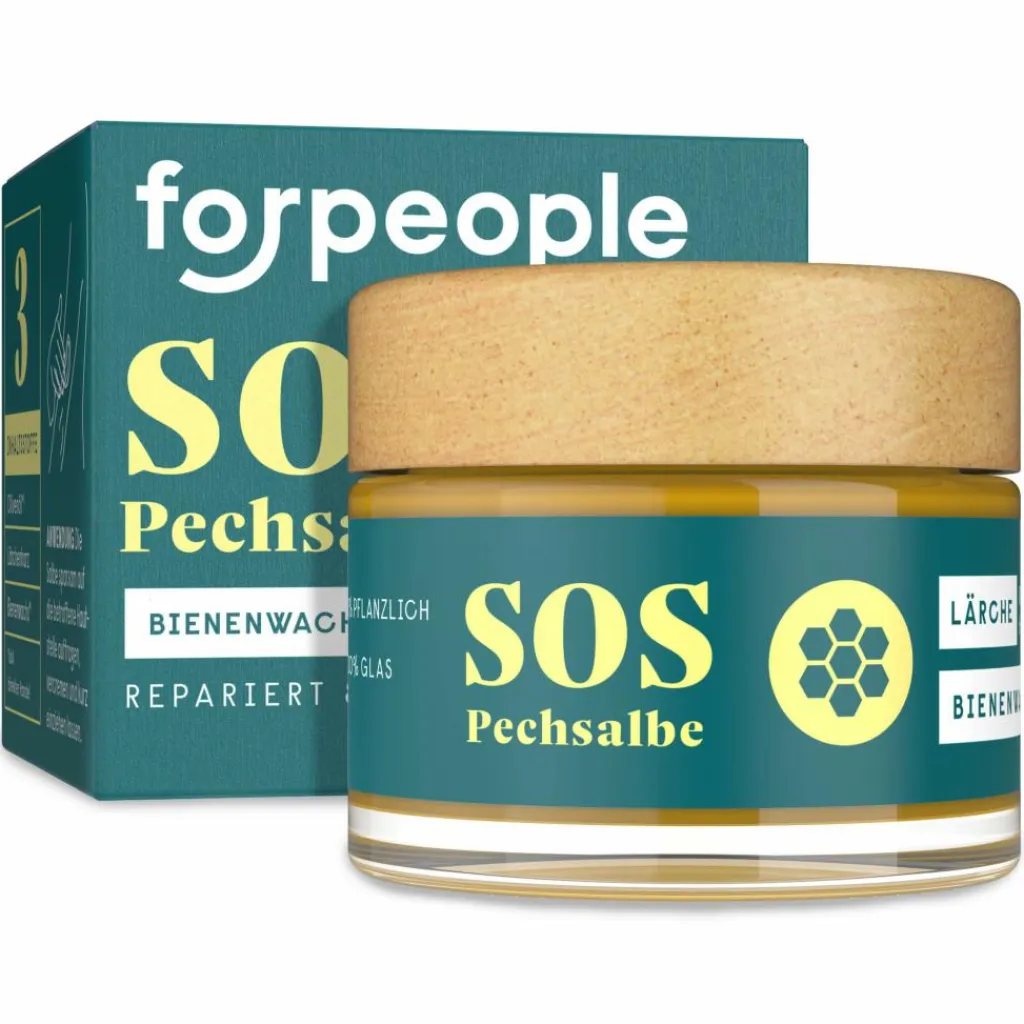 Natürliche Salbe für die Reiseapotheke: Die SOS Pechsalbe pflegt rissige Haut, unterstützt bei der Heilung kleiner Wunden und lindert Muskel- und Gelenkschmerzen.