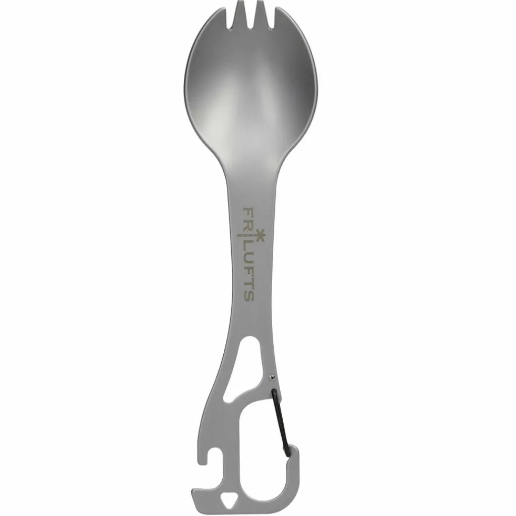 Der Göffel von Frilufts ist aus sandgestrahltem Edelstahl und multifunktional ausgestattet. Die Kombination aus Gabel und Löffel (Göffel; engl. Spork) macht ihn auch im Alltag unverzichtbar, besonders wenn du gerne unterwegs To-Go-Gerichte isst. Der Karabiner hat eine Doppelfunktion: Ihn kannst du auch als Flaschenöffner nutzen. Nach der Mahlzeit kannst du den Svinoy in der Spülmaschine reinigen.