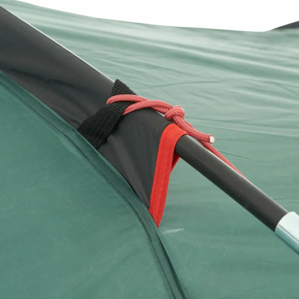 Das preiswerte Familienzelt lässt sich durch markierte Stangen und Gestängekanäle problemlos aufbauen. Trotz der Größe gelingt der Aufbau mit zwei Personen schnell. Das Innenzelt kann beim Aufbau im Außenzelt verbleiben. So wird es auch bei Regen nicht nass.