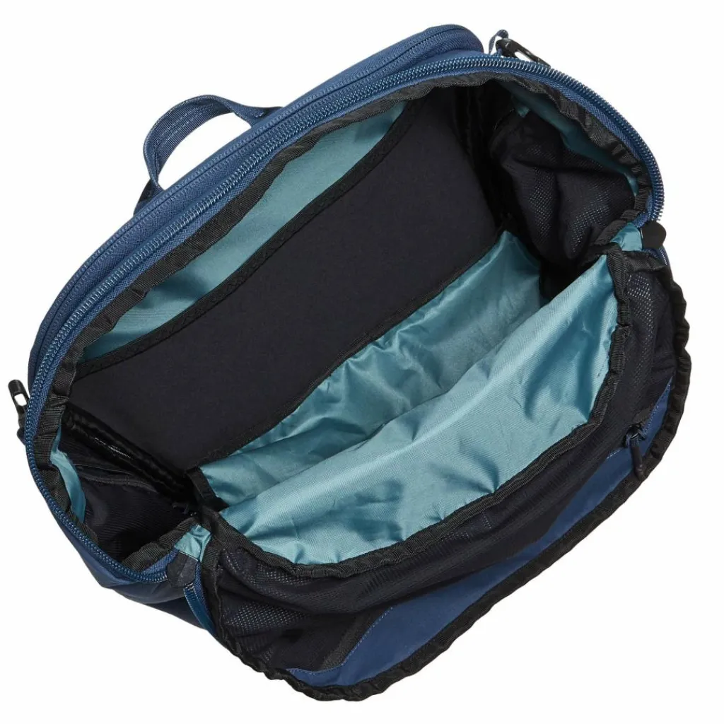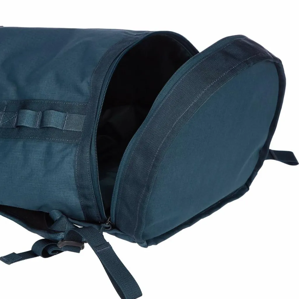 So hast du den kompletten Inhalt im Blick und brauchst nicht lange suchen. Du kannst den Rucksack auch klassisch wie einen Toploader oben öffnen, beispielsweise wenn du schnell an deine Jacke willst. Das Hauptfach ist geräumig. Laptop und Kleinteile bringst du im gepolsterten Fach am Rücken und den Netzfächern unter. Für Schuhe oder Schmutzwäsche gibt es ein Bodenfach, das in der Größe variabel ist.