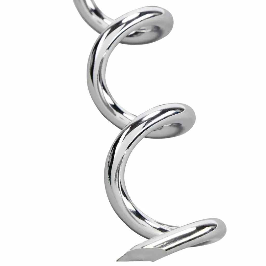 40 cm langer Stahlhering mit Schraubgewinde für mittelharte Böden. Zum leichteren Einschrauben in den Boden kann ein Stock durch das Öhr gesteckt werden.