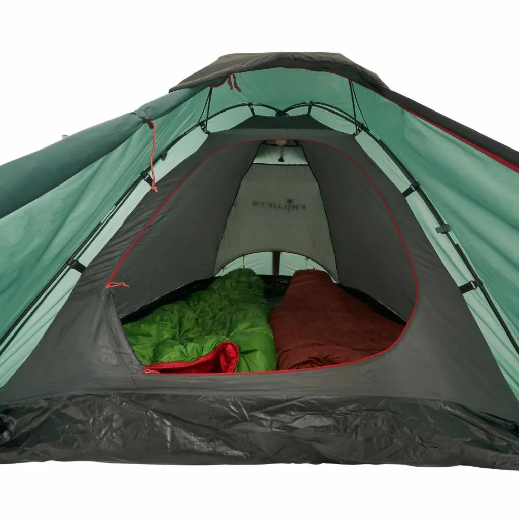 Mit einem Gewicht von nicht einmal 3 kg der ideale Begleiter auf allen Rucksacktouren. Der zusätzliche Firstbogen sorgt für Kopffreiheit im Einstiegsbereich und in der Apsis. Das Außenzelt lässt sich auf der Rückseite über die gesamte Breite aufrollen. Zusammen mit den beiden Lüftern und den großflächigen Moskito-Gaze-Einsätzen am Innenzelt sorgt es so auch bei höheren Temperaturen für hohe Luftzufuhr.