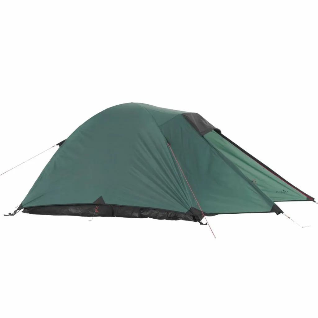 Günstiges Einsteigerzelt für zwei Personen, das sich ideal für erste Wanderungen und andere Outdooraktivitäten eignet. Der Innenraum ist großzügig bemessen und bietet zwei Personen ausreichend Platz.