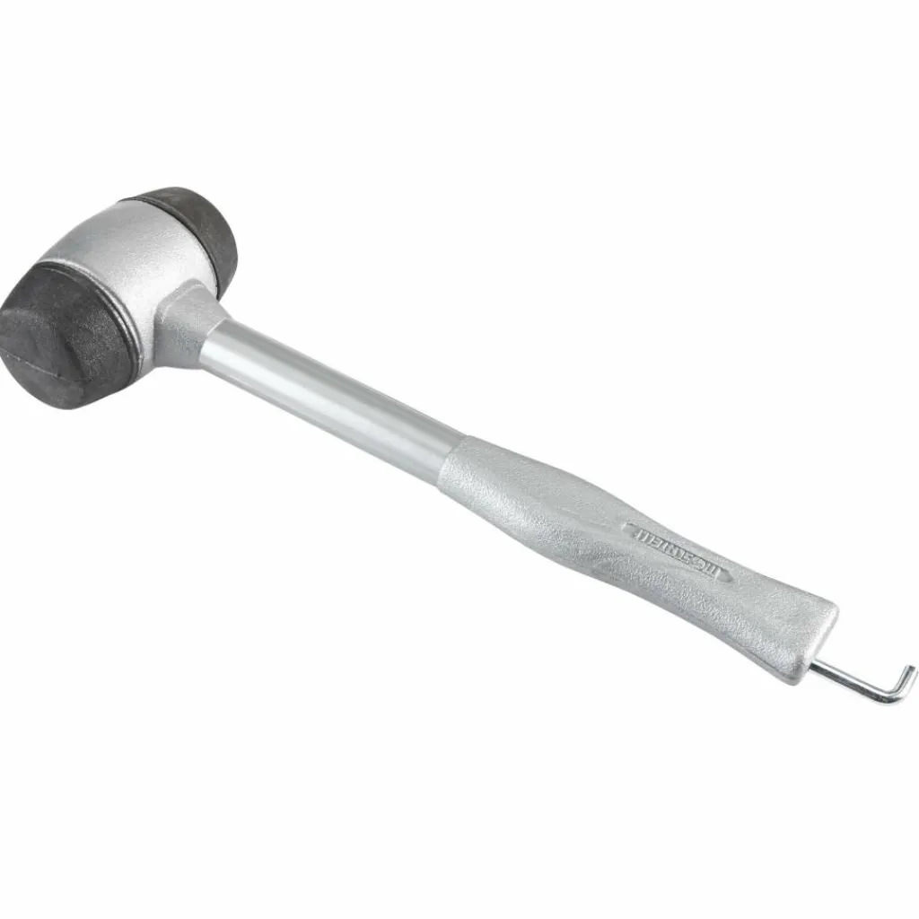 Griffiger, solide verarbeiteter Kunststoff-Hammer mit Metallhaken zum Ziehen von Heringen. Liegt gut in der Hand.