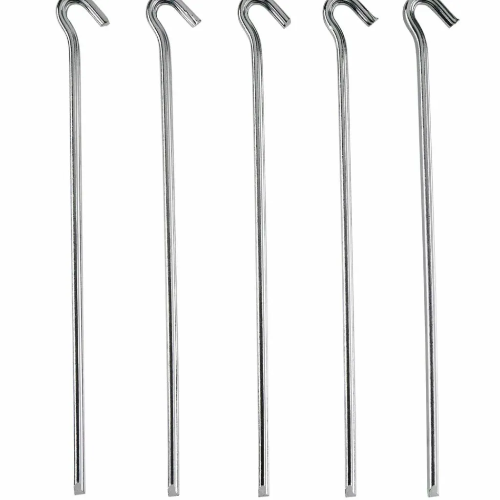 30 cm langer Hering aus verzinktem Stahl in Nagelform. Ideal zum Aufstellen aller Arten von Zelten auf festen bis harten Böden.