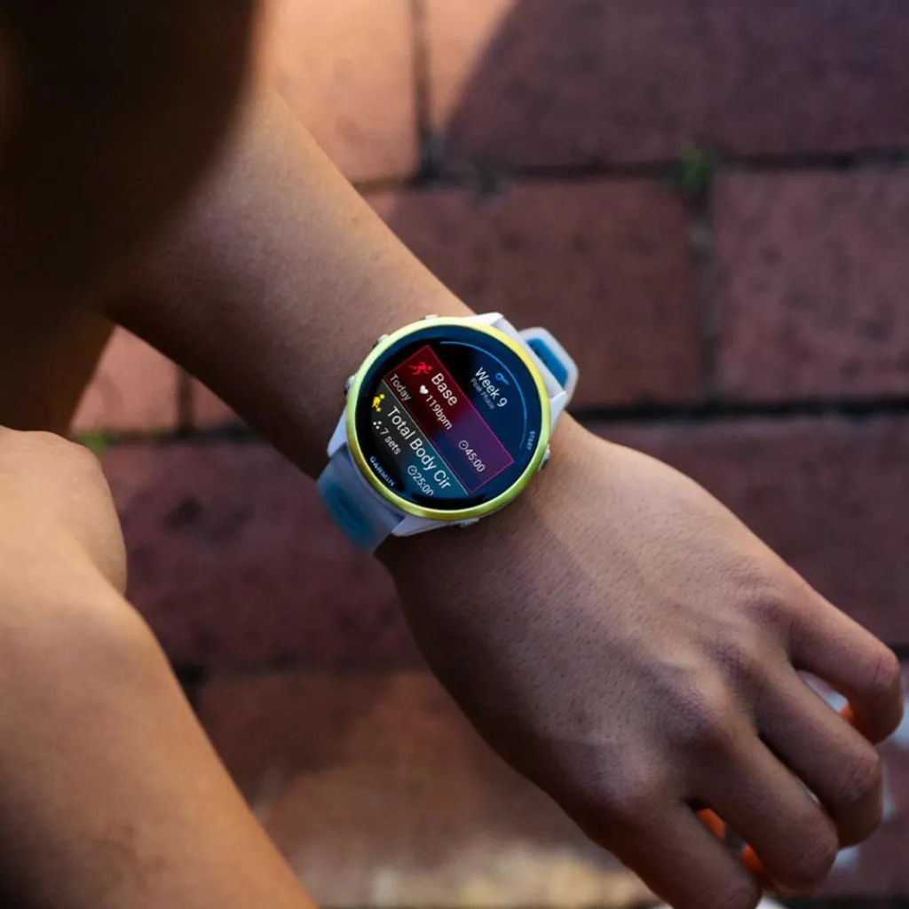 Die Uhr stellt dir einen digitalen Trainer direkt am Handgelenk zur Seite. Er bietet dir adaptive oder vorgefertigte Trainingspläne zum Laufen, Rad fahren, Krafttraining, Triathlon und viele weitere Sportarten, abgestimmt auf dein Niveau. Mit strukturierter Anleitung und dynamischer Anpassung auf Basis deiner Leistungs- und Gesundheitsdaten.