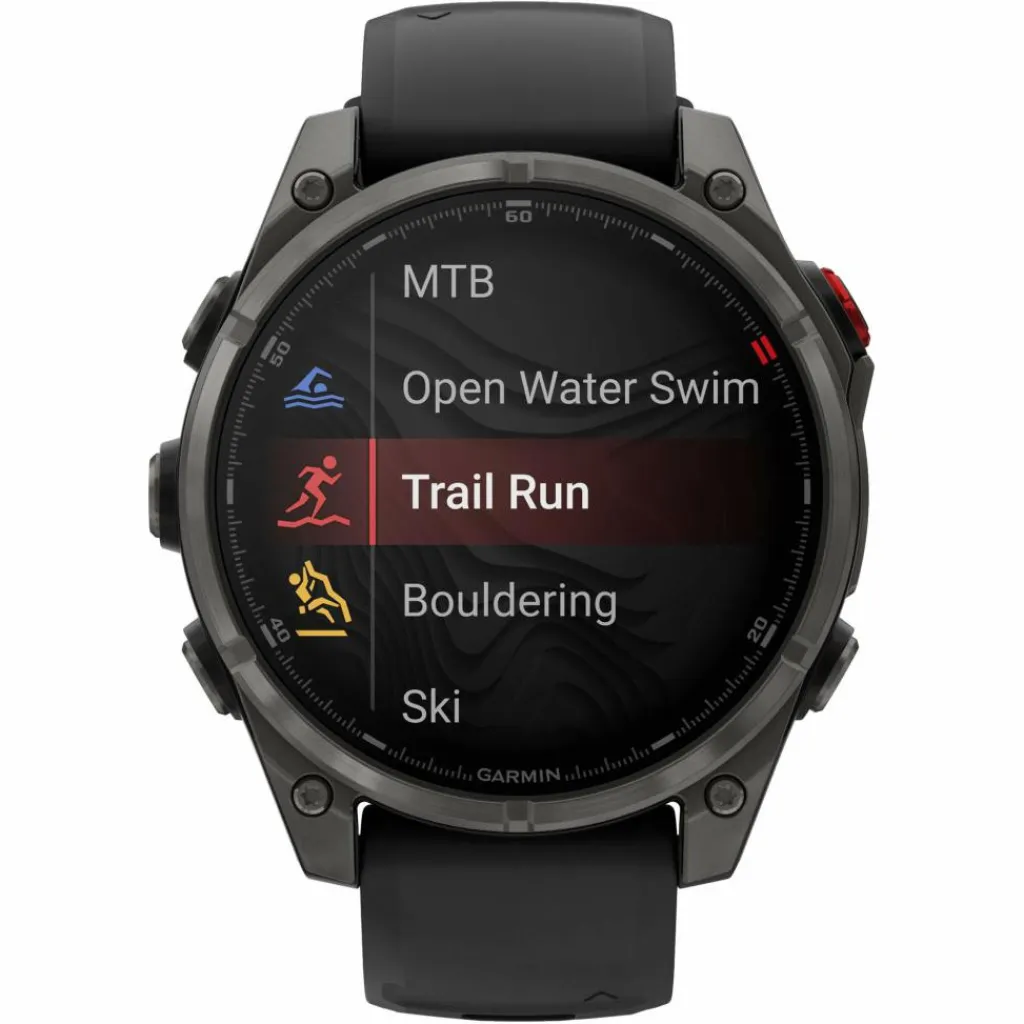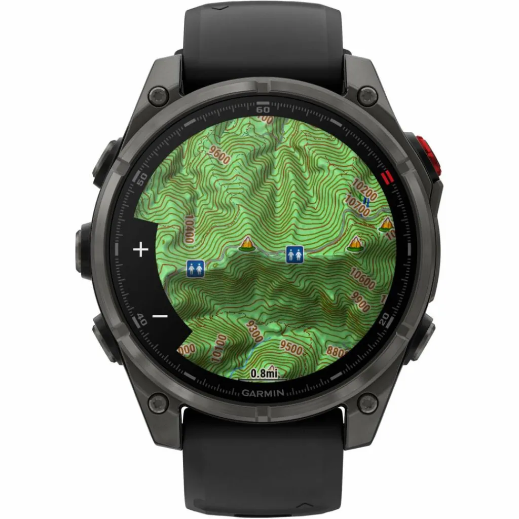 Das hochwertige Design der fēnix 8 macht alles mit. Es ist für das Tauchen geeignet, hat wasserdichte Tasten, einen Sensorschutz aus Metall und ein helles 1,4-Zoll AMOLED Touchdisplay mit kratzfestem Sapphire Glass und einer Titan-Lünette. Die Smartwatch wurde nach US-Militärstandards im Hinblick auf thermische Leistung, Stoßfestigkeit und Wasserdichtigkeit getestet.