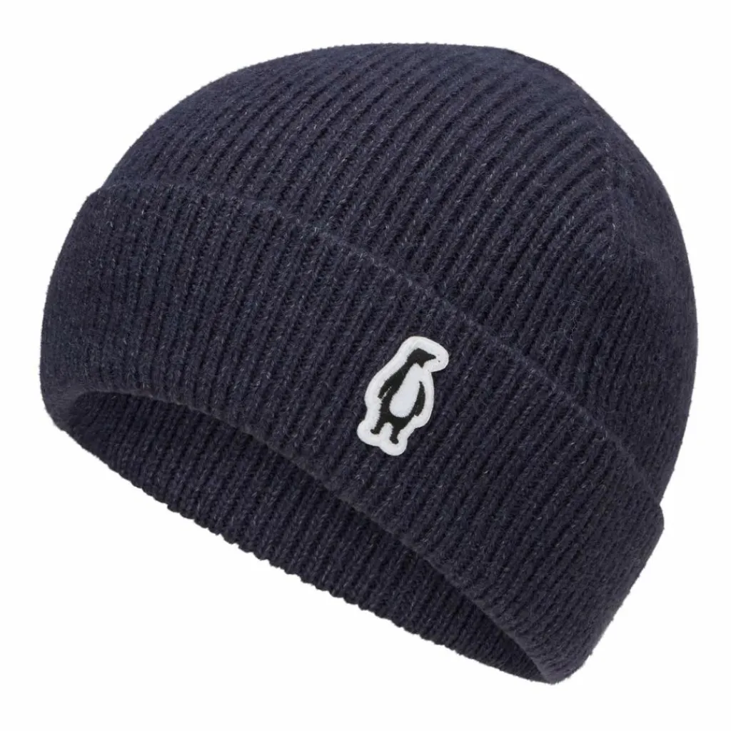 Durch das dehnbare Rippstrick-Material sitzt die Beanie sehr bequem auf dem Kopf. Der umgeschlagene Bund sorgt für eine doppelte Portion Wärme und eine besonders lässige Optik. Bei so viel Komfort ist es natürlich kein Wunder, dass es sich auch schon ein neugieriger Pinguin auf der Mütze bequem gemacht hat. Er begleitet von seinem kuscheligen Platz aus deine Kids bei ihren Winter-Abenteuern.