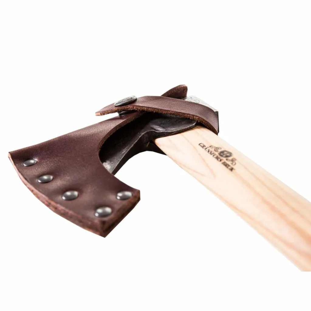 Um dich und deine Ausrüstung vor der äußerst scharf geschliffenen Klinge zu schützen, ist der Kopf mit einem Schneidenschutz aus Leder ausgestattet. Das Leder ist pflanzlich gegerbt, biologisch abbaubar und enthält keine Schwermetalle.
