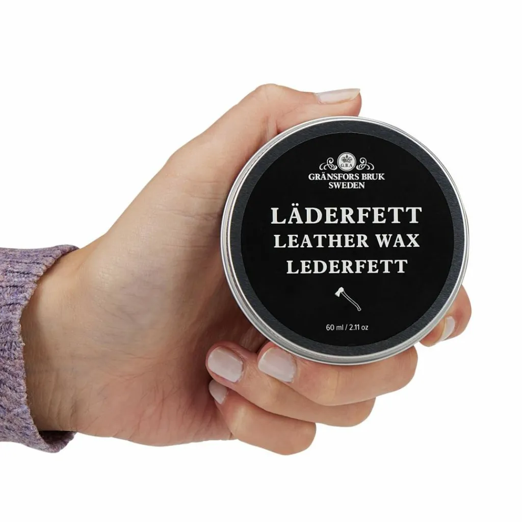 Das Lederfett pflegt und schützt alle Lederarten, macht sie geschmeidig, weich und wasserabweisend. Es eignet sich ideal zum Einfetten des Schneidschutzes von Äxten und anderen Lederapplikationen.