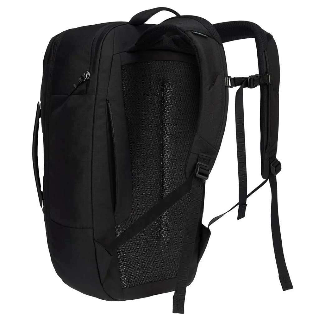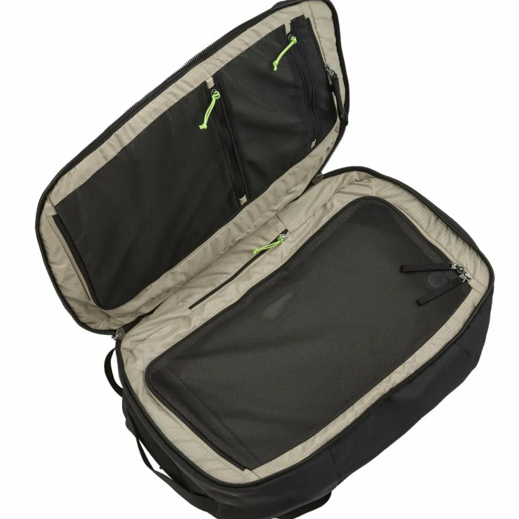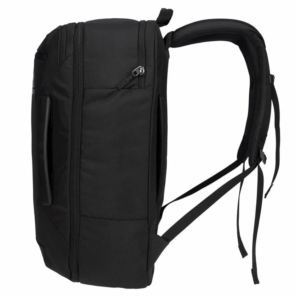 Das Tragesystem des Border 30 vereint großartige Belüftung mit weicher Polsterung, denn beim Kontaktrücken des Kofferrucksacks kommt luftiges 3D-Mesh zum Einsatz. Die Schultergurte lassen sich bei Bedarf verstauen, wodurch der Border 30 am Flughafen auch problemlos als Gepäck aufgegeben werden kann. Nimmst du den Rucksack lieber mit an Bord, kannst du ihn auf dem Weg zum Gate dank der praktischen Aufstecklasche bequem am Teleskopgriff deines Rollkoffers befestigen. Und in der Kabine erleichtern dir zwei seitliche Griffe das Platzieren in der Gepäckablage.