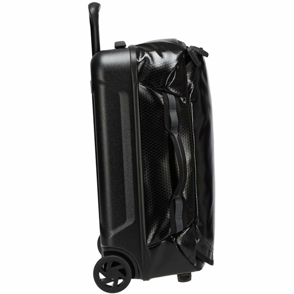 Für Reisen mit Flugzeug, Bahn und Bus eignet sich die Reisetasche mit Rollen ideal. Zum einen weil sie dank des cleveren Hybridsystems aus Polycarbonat-Gehäuse und strapazierfähigem Front-Material mit grobem Handling bestens zurechtkommt. Zum anderen verfügt sie über mehrere Tragegriffe und Ausrüstungsschlaufen an den Seiten, sodass sie sicher auf Auto- und Busdächern verzurrt werden kann.