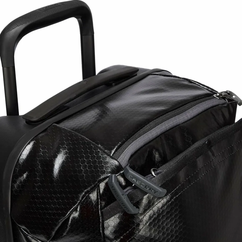 Sollte es auf der Fahrt mal einen kurzen Schauer geben, macht das der rollenden Duffel nichts aus, da das Frontmaterial wasserabweisend mit TPU beschichtet ist. Die letzten (Kilo-)Meter zur Unterkunft fährt die Alpaca Wheeled Duffel auf ihren großen, leisen Rollen hinter dir her, und zwar auf Asphalt genauso gut wie auf holprigen Wegen.