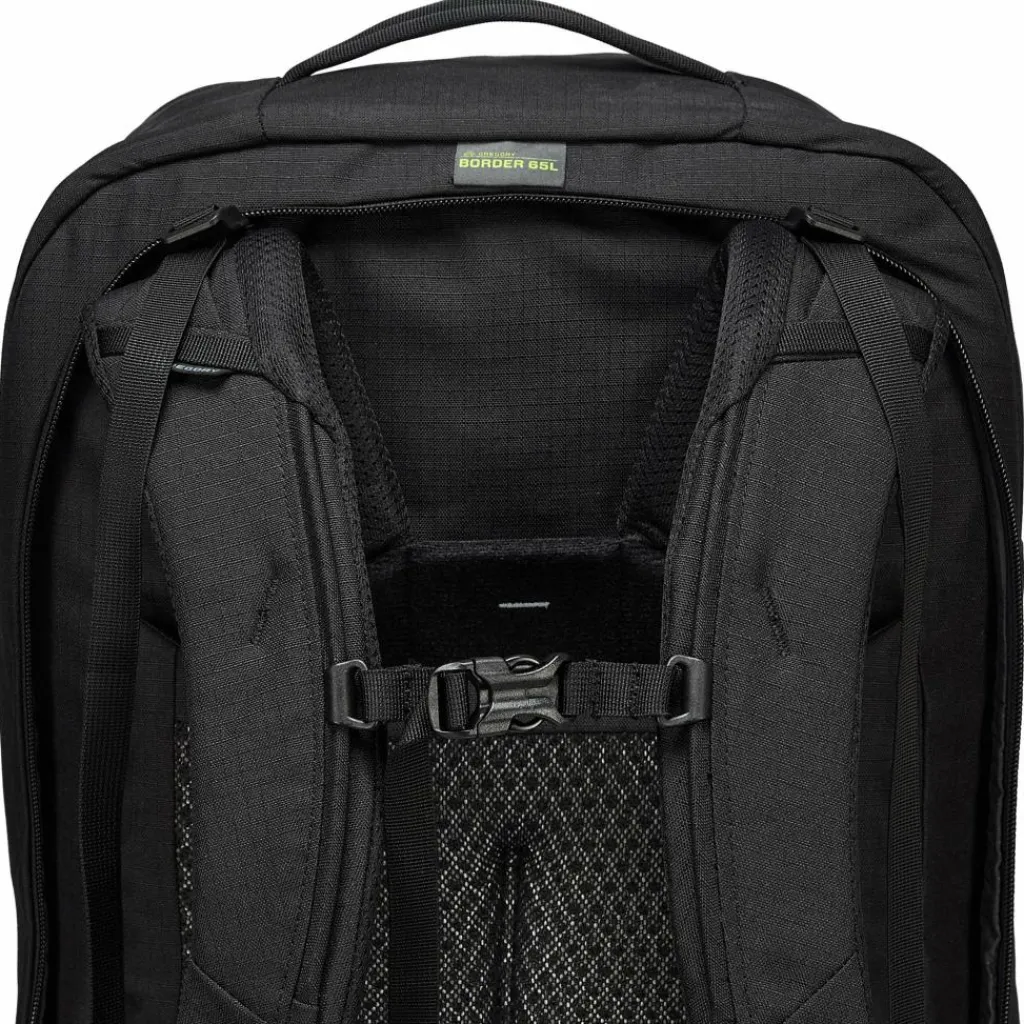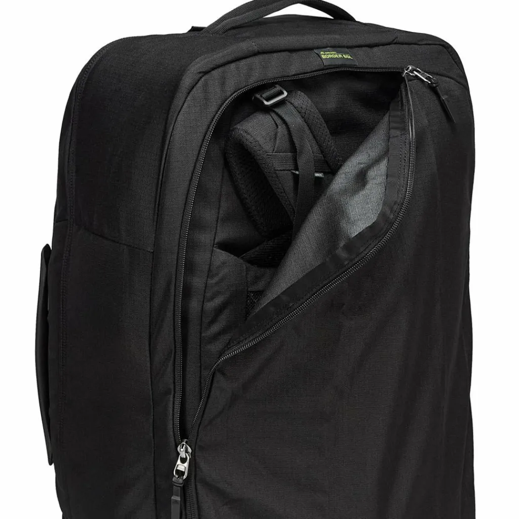 Die Schultergurte und die Hüftflossen können bei Bedarf verstaut werden, wodurch der Border 50+15 am Flughafen problemlos als Gepäck aufgegeben werden kann. Und für eine bequeme Handhabung beim Check-In, im Zug oder Hotel sind zwei Griffe seitlich auf der Front des Kofferrucksacks platziert.