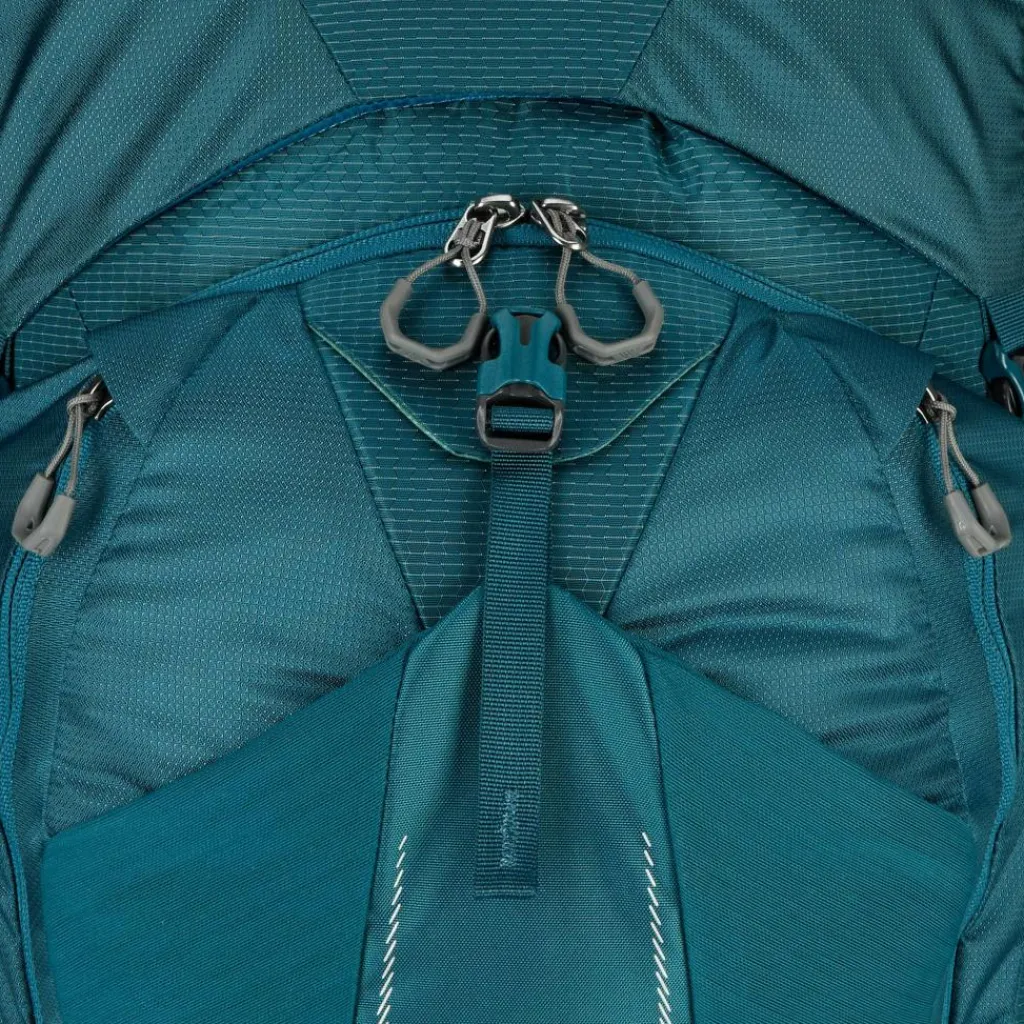 Auf den ersten Blick fällt das Steckfach auf dem linken Schultergurt auf. Darin kannst du entweder deine Sonnenbrille griffbereit verstauen oder ein GPS-Notrufgerät wie das Garmin InReach Mini 2 (optional erhältlich). Das Frontfach wurde mit 420D Nylon verstärkt, sodass du dir beim Ablegen des Trekkingrucksacks keine allzu großen Gedanken um Abrieb machen musst. Auch das seitliche Steckfach besteht nun aus robustem Nylon und wurde zudem vergrößert. So eignet es sich perfekt für sperrige und scharfkantigere Gegenstände wie Zeltgestänge oder Trekkingstöcke.