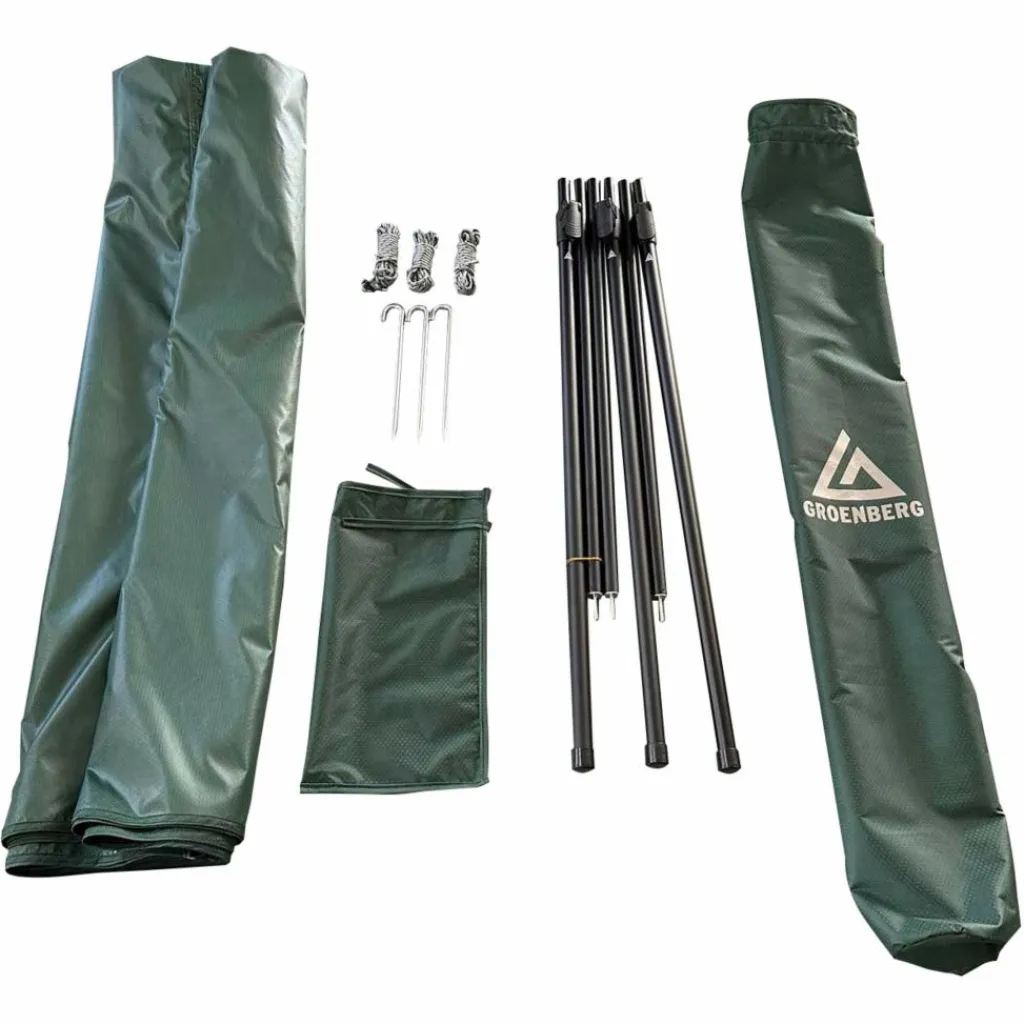 Dank dreier Tarpstangen, Abspannleinen und Heringen (im Lieferumfang enthalten) lässt es sich schnell und einfach, vor allem aber auch stabil aufbauen und bietet dir dank der maximalen Grundfläche von 3 x 2,4 m einen deutlich gesteigerten Wohnraum. Auch bleibt dank des Tarps der Inhalt des Kofferraums trocken, was besonders beim Packen ein großer Vorteil sein kann.