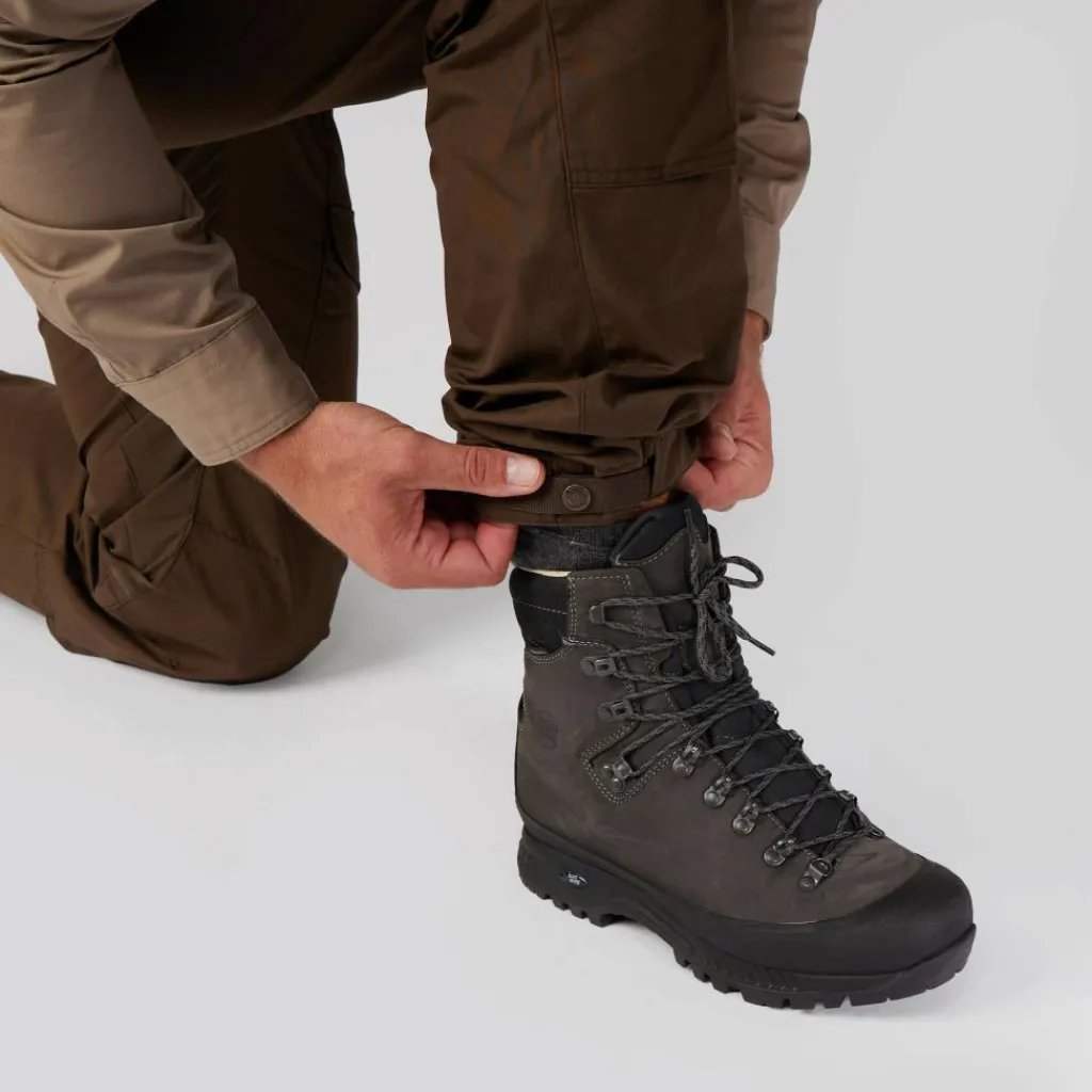 Außen zeigt sich kräftiges, geschmeidiges Nubukleder; innen kommt feuchtigkeitsleitendes Gore-Tex-Futter an den Fuß.