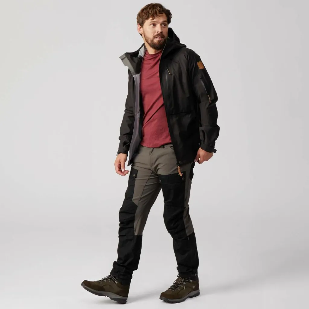 Für die nötige Robustheit, auch in schroffem Gelände, sorgt der Oberaufbau aus robustem Nubukleder, das auch mit der ein oder anderen Felskante nicht sofort Probleme hat. Im Fersen- und Zehenbereich wird es noch durch eine zusätzliche Schicht aus Veloursleder ergänzt und verstärkt. Im Schaftbereich kommt zusätzlich flexibles, synthetisches Mesh-Gewebe zum Einsatz.