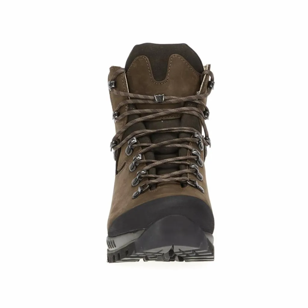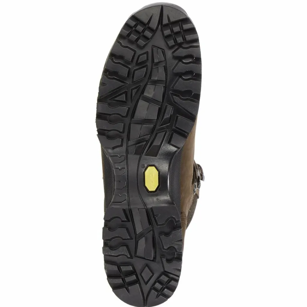 Eine Zwischensohle und ein Shock-Absorber im Fersenbereich dämpfen den Auftritt. Die feste Vibram-Laufsohle hat ein kräftiges Profil mit Brems- und Auftrittstollen. Diese mindern die Gefahr des Wegrutschens beim Auf- und Abstieg.