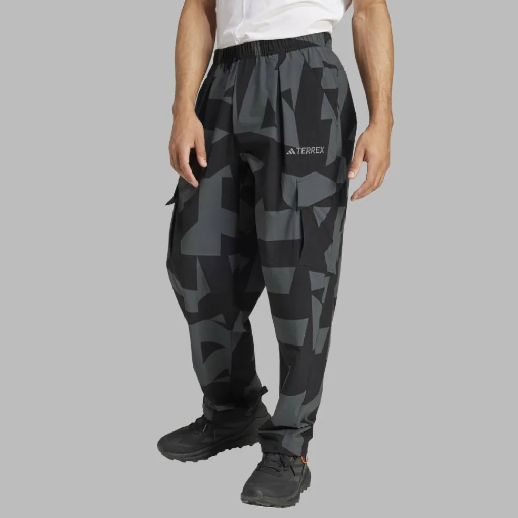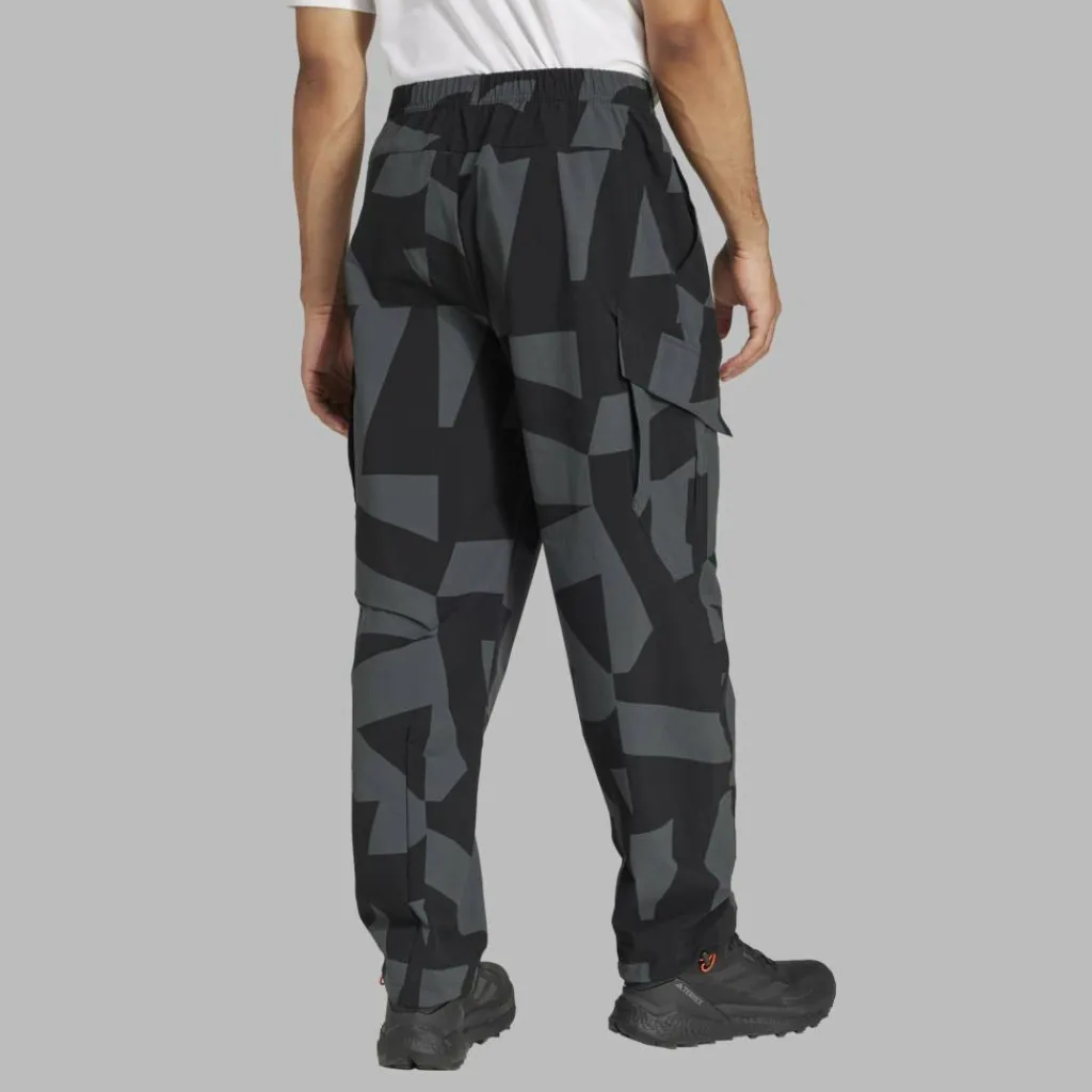Der Jogger-Style mit weiter Passform und elastischem Bund sorgt für einen super bequemen Sitz und eine lässige Optik. Der abstrakte Terrex-Print trägt ebenfalls zum modernen Look der Hose bei. Zwei Einschubtaschen mit luftigem Netzfutter und zwei Beintaschen mit Patte bieten genügend Stauraum für wichtigen Kleinkram. Dank des Schnürzugs in den Beinabschlüssen kannst du die Weite ganz nach Wunsch anpassen.