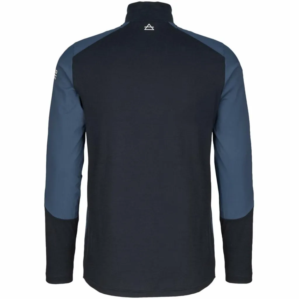 Die Vorderseite, Schulterpartien und oberen Ärmel bestehen aus einem feuchtigkeitsleitenden, strapazierfähigen und dehnbaren Mix aus Merinowolle, Polyamid und Elasthan. Der Materialmix verfügt über eine kurze Trocknungszeit, reguliert die Körpertemperatur und ist windabweisend. So genießt du uneingeschränkte Bewegungsfreiheit und bist bei windigem und kühlem Wetter optimal aufgehoben.