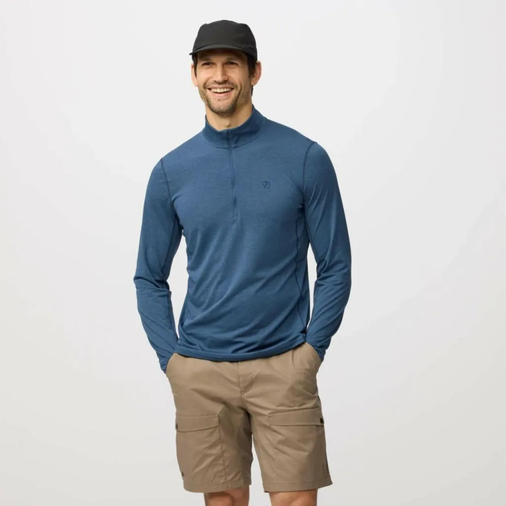 Vielseitiges Langarmshirt aus schnelltrocknendem Material; das Abisko Day Hike Half Zip M eignet sich bei warmem Wetter solo getragen und kann sonst auch hervorragend im Lagensystem eingesetzt werden.