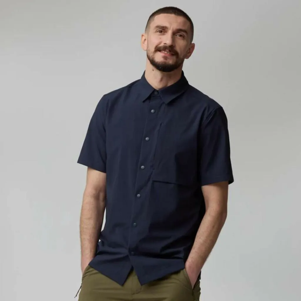 Das kurzärmelige Funktionshemd besticht durch sein geringes Gewicht, das zeitlose Design und hervorragende feuchtigkeitsleitende Eigenschaften. Dank des mechanischen Stretchs schränkt es dich dabei ganz ohne Elasthan auch in der Beweglichkeit nicht ein. In der kleinen RV-Brusttasche kannst du Nützliches oder Wertvolles sicher verstauen. Um Platz im Rucksack zu sparen, kann das Hemd in die eigene Tasche verpackt werden.