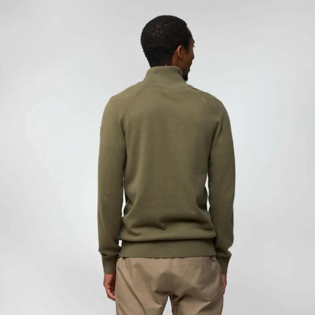 Wärmender Midlayer für kühles Wetter: Der Övik Lite Half Zip wärmt dich, falls nötig, dank hohem RV-Kragen bis hinauf zum Kinn. Der weiche Mix besteht aus Merinowolle und Bio-Baumwolle.