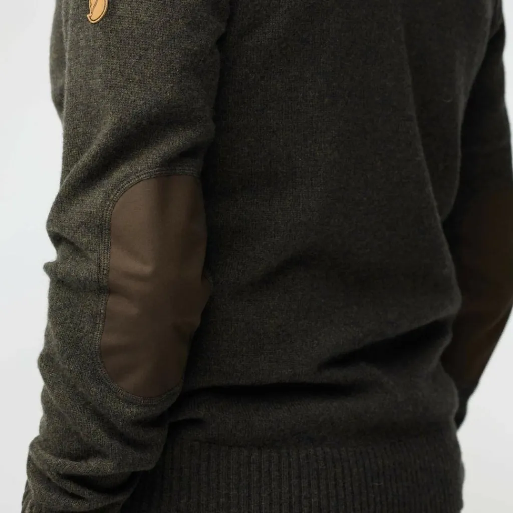Die Bereiche an den Ellenbogen sind mit G-1000 Eco verstärkt. Sie schützen vor Abrieb und unterstreichen die rustikale Optik des Pullovers. Durch die Rippstrick-Bündchen am Halsausschnitt, an den Ärmeln und am Saum sitzt der Pullover passgenau und sehr bequem. Auch der gerade, nicht einengende Schnitt trägt zum hohen Komfort des Pullovers bei.