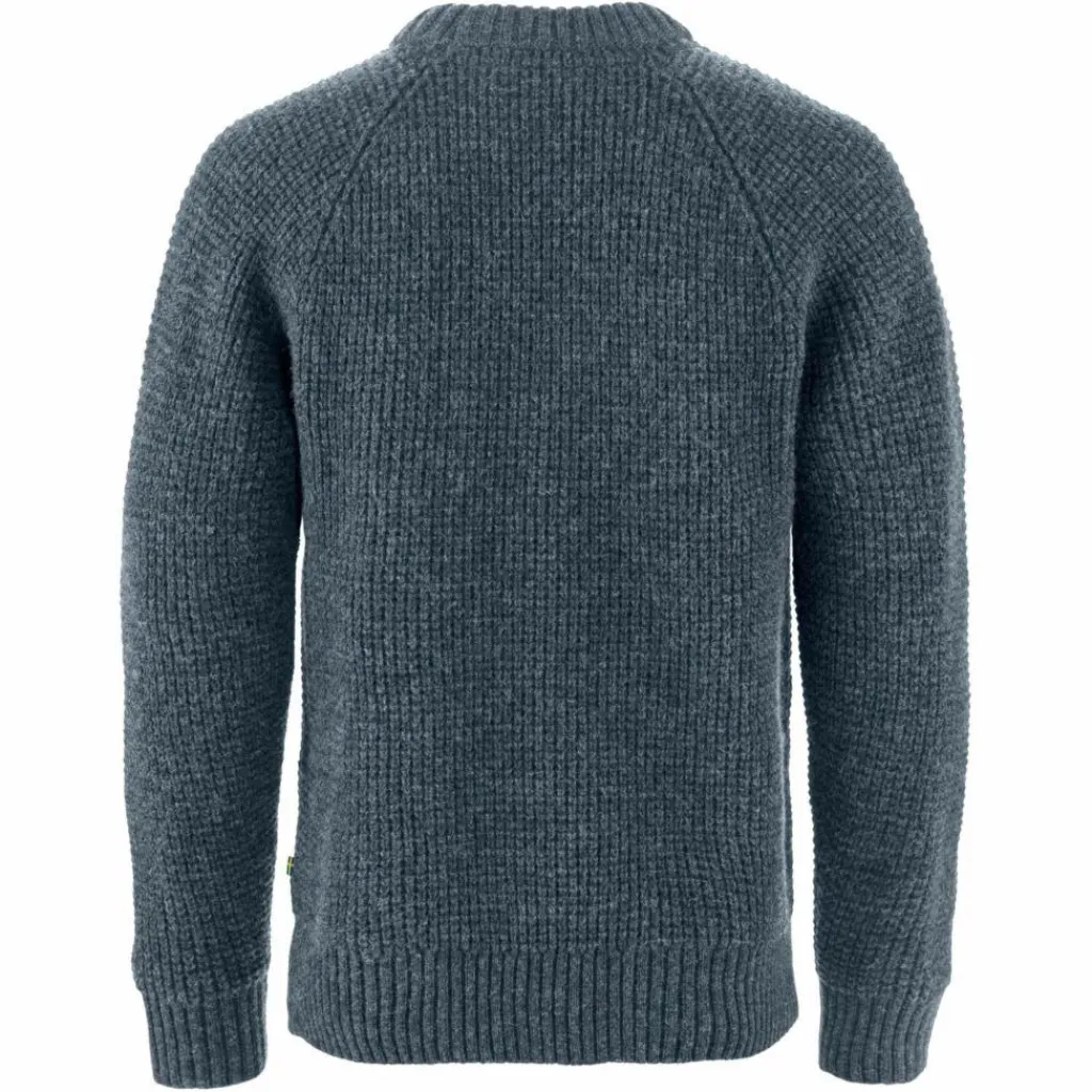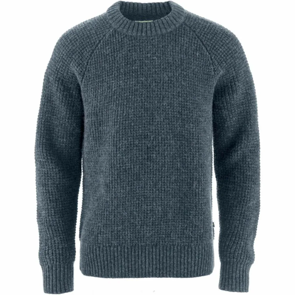 Ärmelbündchen, Kragen und unterer Saum stehen im Kontrast zur Waffelstruktur an Körper und Ärmeln: Diese sind in Rippstrick-Optik gehalten und machen aus dem Övik Waffel Knit M einen Pullover, den man jeden Tag anziehen könnte. Die Wolle spielt hier natürlich auch ihre anderen Fähigkeiten aus: Neben dem ausgezeichneten Wärmevermögen ist Wolle geruchshemmend und feuchtigkeitsleitend. Außerdem kann diese Naturfaser auch dann noch Wärme spenden, wenn sie feucht geworden ist. Und das Klima in einem solchen Wollpullover ist beinahe unvergleichbar: auch wenn du dich nach der Kälte draußen wieder in einem warmen Raum aufhältst, sorgt die Faser für ein angenehmes Tragegefühl – ganz ohne zu überhitzen. Typisch Wolle!