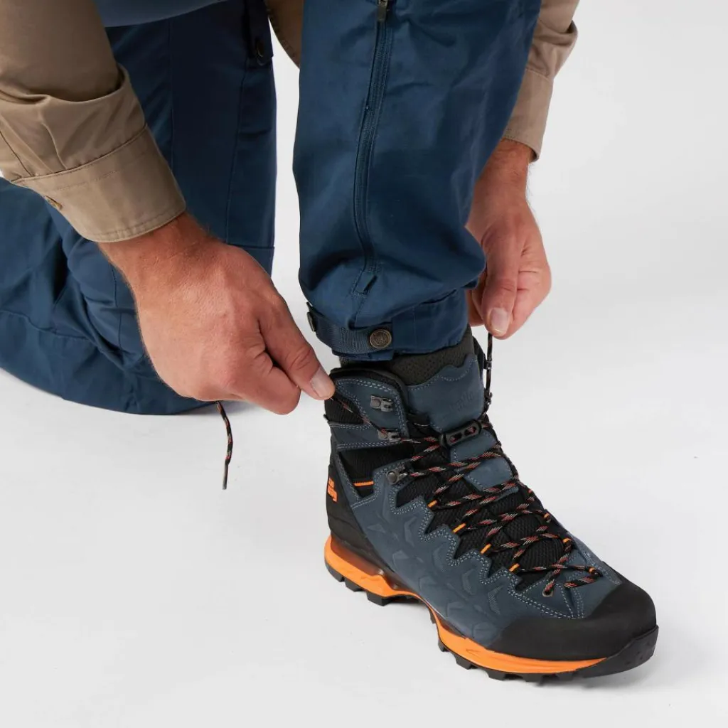 Der hauptsächlich aus kräftigem Perwanger Veloursleder gefertigte Stiefel mag es dabei auch gern mal besonders rau. Egal ob scharfkantiges Gestein oder kniehohes Gestrüpp. Dem Makra Trek ist weder durch das eine, noch das andere beizukommen. Ideal für anspruchsvolle Wanderungen im Alpenraum, aber auch in Skandinavien oder der polnischen und slowakischen Tatra – übrigens das kleinste Hochgebirge der Welt!