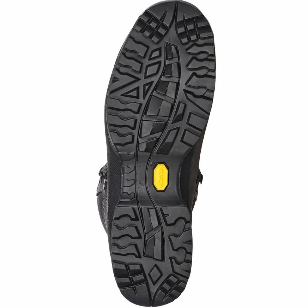 Eine Zwischensohle und ein Shock-Absorber im Fersenbereich dämpfen den Auftritt. Die feste Vibram-Laufsohle hat ein kräftiges Profil mit Brems- und Auftrittstollen. Diese mindern die Gefahr des Wegrutschens beim Auf- und Abstieg.