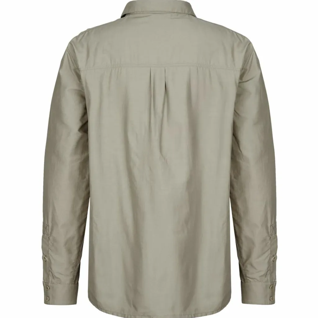 Ein zusätzliches Hindernis für Blutsauger stellt der Kragen dar. Dieser lässt sich ausklappen und mittels Knopf eng anliegend schließen. Die Ärmel sind ebenfalls mit Knöpfen ausgestattet und lassen sich im Bedarfsfall aufrollen. Für wichtige Habseligkeiten steht dir Platz in den drei Brusttaschen zur Verfügung.
