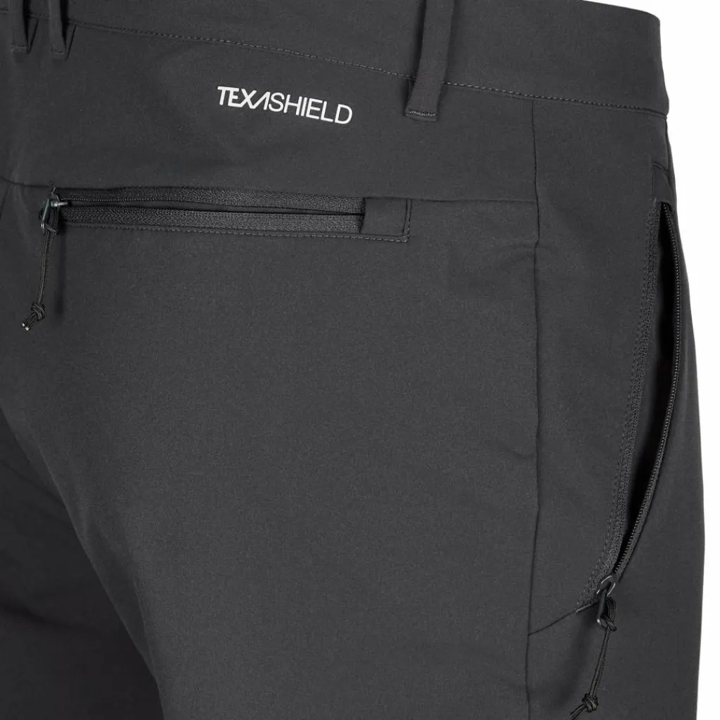 Die Trekkinghose ist mit vier dezent eingearbeiteten Reißverschlusstaschen ausgestattet. In den Einschubtaschen und der Gesäßtasche lassen sich Geldscheine, Karten, Schlüssel und diverse andere kleine Dinge sicher verstauen. Die Beintasche bietet ausreichend Stauraum für dein Smartphone.